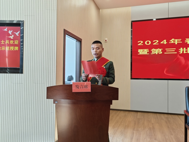 县退役军人事务局主要负责同志作了欢迎致辞。他表示,举行隆重的光荣返乡欢迎和就业创业示范授牌仪式,是增强退役军人的幸福感、归属感、仪式感、荣誉感的重大举措。希望春季退役士兵退役返乡后,继续保持特别能吃苦、特别能战斗、特别能奉献、特别守纪律的优良传统,在家乡的经济发展建设中,展现新时代退役军人新风采。希望通过一批又一批创业示范的树立,让先进成为示范,让示范成为榜样,让榜样成为力量,让“橄榄绿”始终飘扬在经济社会发展的最前线。