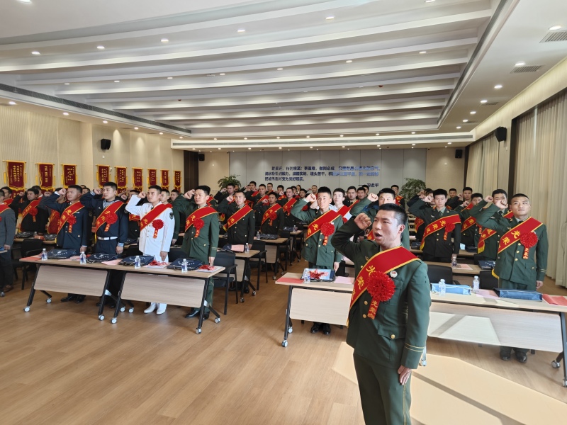 仪式上,全体退役返乡士兵和退役军人就业创业示范们举起右拳,神情激昂的重温了《军人誓词》,声音铿锵有力,振奋人心,响彻全场。