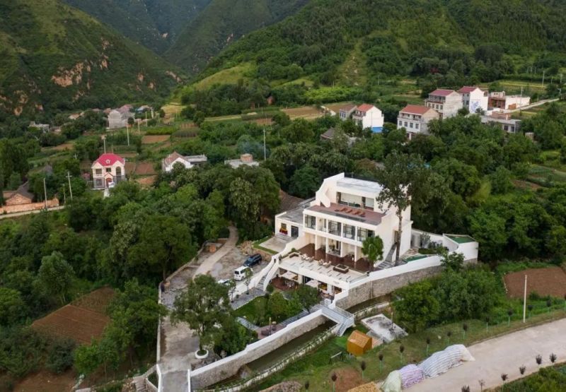 民宿“忆间悠居”位于九间房镇峪口村内,是九间房民宿集群地的精品民宿。远远望去,白色的民宿外观,在碧绿的山林间分外惹眼。身处其中,远山、树木、流水,朴素、自然、闲适拥抱自然,化为一副优美的画卷,构建出人们向往的诗意悠居中的生活情调。