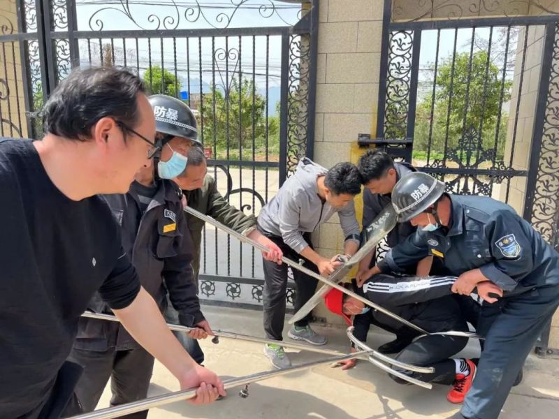 4月19日上午,史家寨初中开展反恐防暴安全演练活动。演练前,学校召开专题会议,制定演练方案,成立领导小组,对师生讲解了演练细节,明确分工,落实责任。按照演练方案,由一名教师假扮“歹徒”手持凶器欲强行入校,安保人员立即按响警报,全副武装与“歹徒”进行搏斗。学校防暴小组迅速出击,与“歹徒”对峙周旋,在众人合力下,最终将“歹徒”制服。