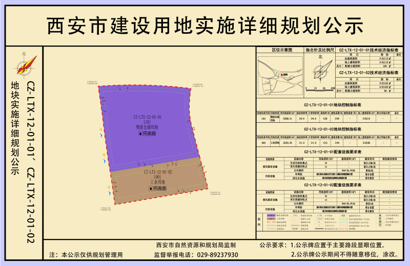 LTX-12-01-01、LTX-12-01-02地块位于蓝田县三里镇,西北侧为蓝田东立交,南侧为312国道。LTX-12-01-01净用地面积5.3526公顷(80.290亩),规划用地性质为物流仓储用地(代码1101),规划指标为:容积率≥0.6、建筑系数≥30%、绿地率≤20%。LTX-12-01-02地块净用地面积2.3182公顷(34.773亩),规划用地性质为工业用地(代码1001),规划指标为:容积率≥1.0、建筑系数≥40%、绿地率≤15%;停车位配建按照《蓝田县建设项目停车位配建标准(试行)》执行。