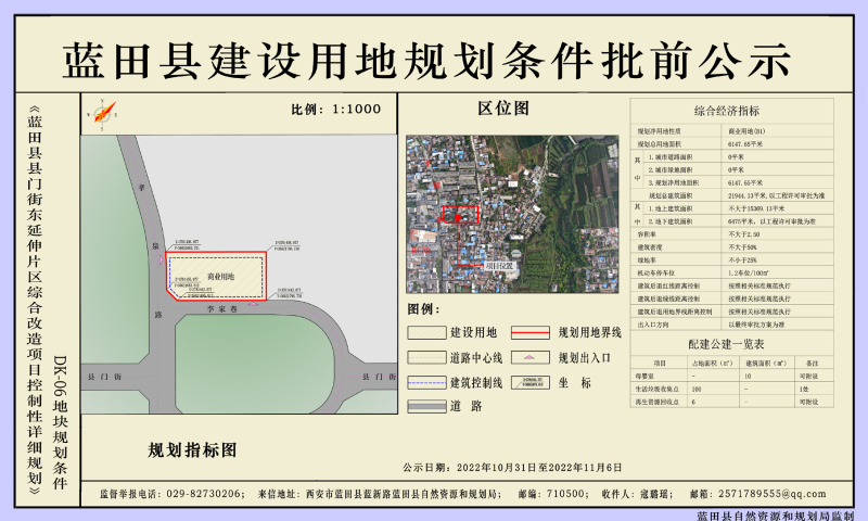 该宗用地位于蓝田县蓝关街办东场村,具体规划指标如下: